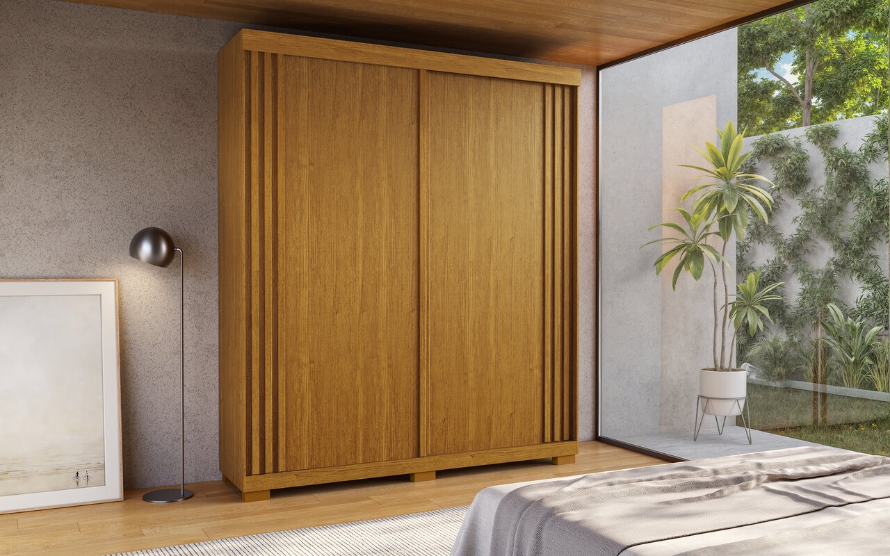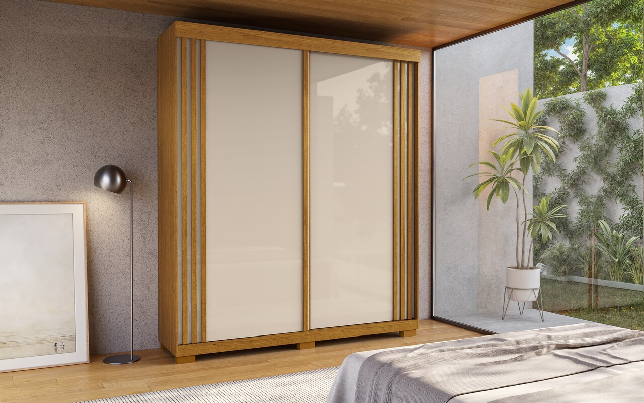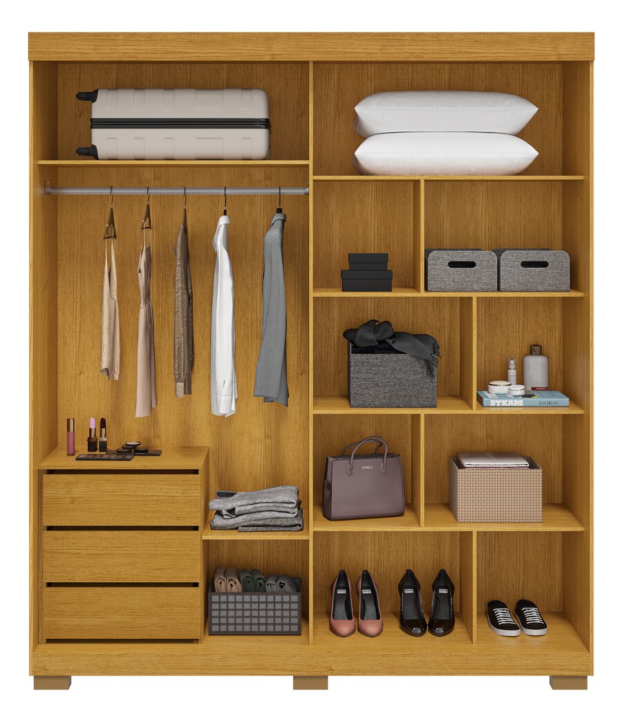 Roupeiro com 02 portas deslizantes, 03 gavetas internas corrediças Telescópica. Estrutura em MDF