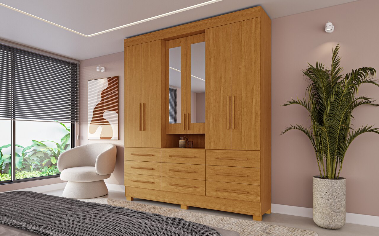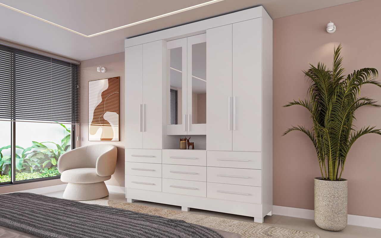 Roupeiro Débora 9 gavetas com espelho