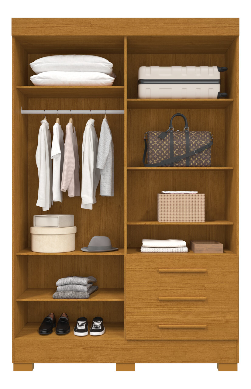 Pintura interna normal. Corrediças telescópicas e Cabideiro em alumínio. Espelhos e Pés inclusos.
