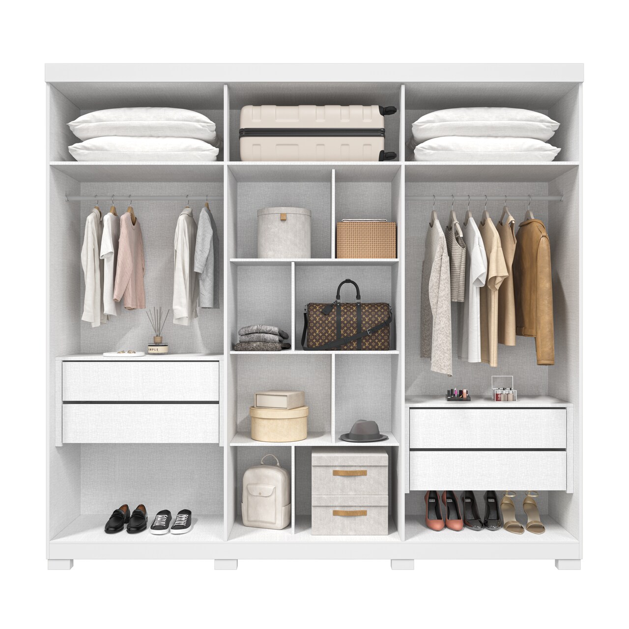 Roupeiro com seis portas e quatro gavetas internas com corrediças Telescópica.